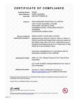 O UL listou o fogo avaliado pelo hardware pela dobradiça pelo fechamento pela barra mais próxima do pânico pelo visor # Pelo hardware # UL LISTED